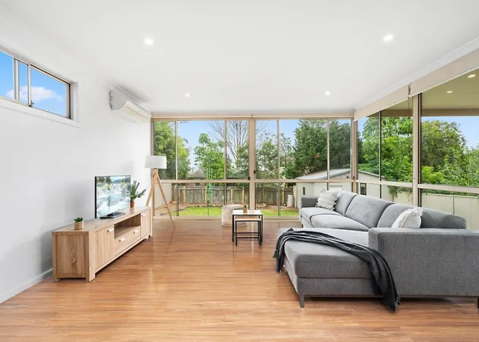 The Church of Jesus Christ Parramatta Wardから徒歩で6分に位置するベッドルーム1室のOatlands Big Stylish 3 Bed House With Free Parkingヴィラは、庭園の景色を望むテラスを提供しています。